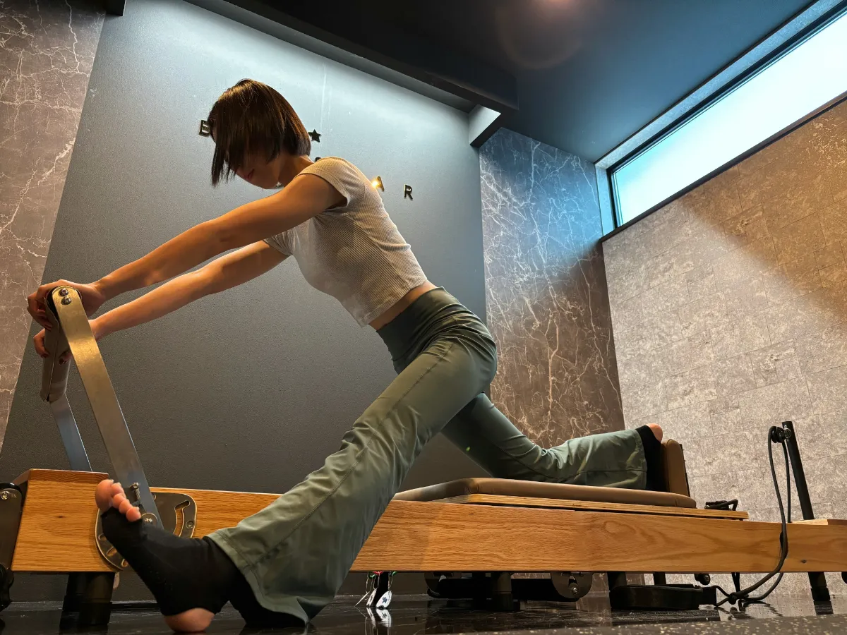 最新リフォーマーを使った科学的なピラティスで体幹を鍛え、深い呼吸のヨガで心を整え、実践的な栄養サポートで日常を変える。